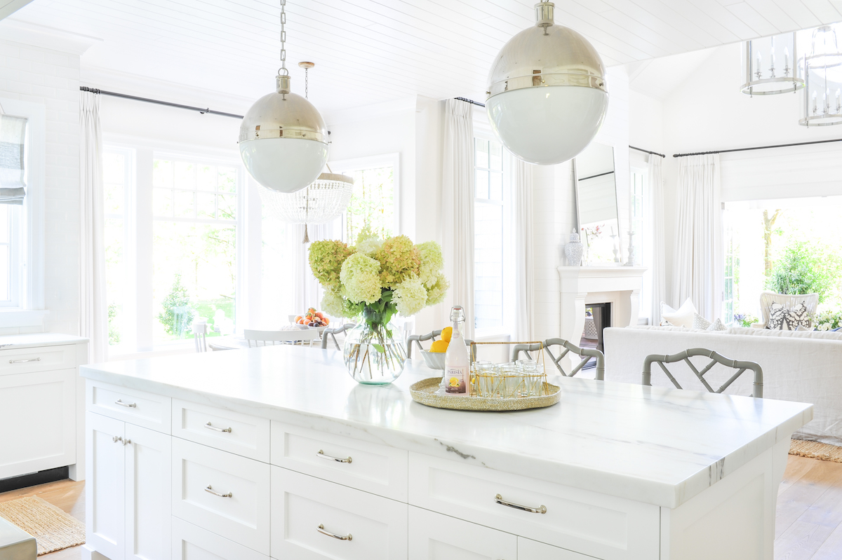 2. Don’t be afraid to splurge on gorgeous details to really make your kitchen unique to your personal style. Start with cabinet color, light fixtures, plumbing such as a faucet(s) and a pot filler (game changer btw) and hardware. These key elements will make a big impact to the look and design. All our metal finishes (hardware, faucets and lighting) are polished nickel; I get this question a lot!
